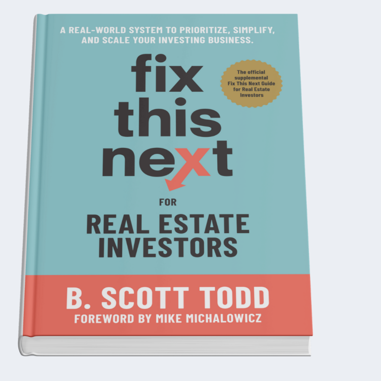 Most real estate investors don’t fail from lack of effort. They fail because they keep solving the wrong problem. Fix This Next for Real Estate Investors provides you with a clear system — the Investor Priority Pyramid™ — to identify your business’s most pressing needs and ultimately create time and income freedom.